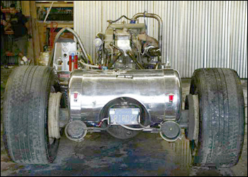 axle, and building the trike frame around the 3,000-pound truck motor. |